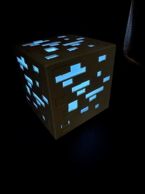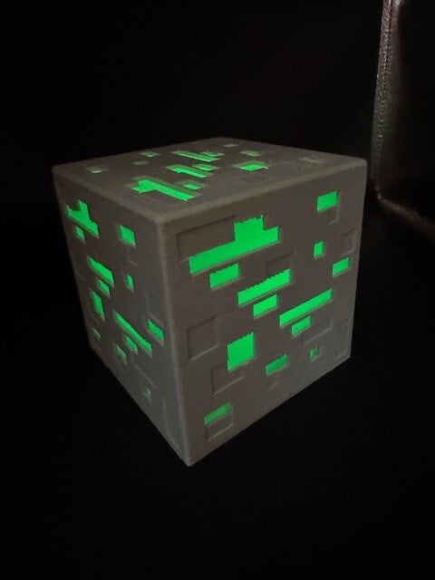 Minecraft Ore Lamps use a tea light inside you can replace to glow the ore color of the insert. These are great as nightlights in kids rooms